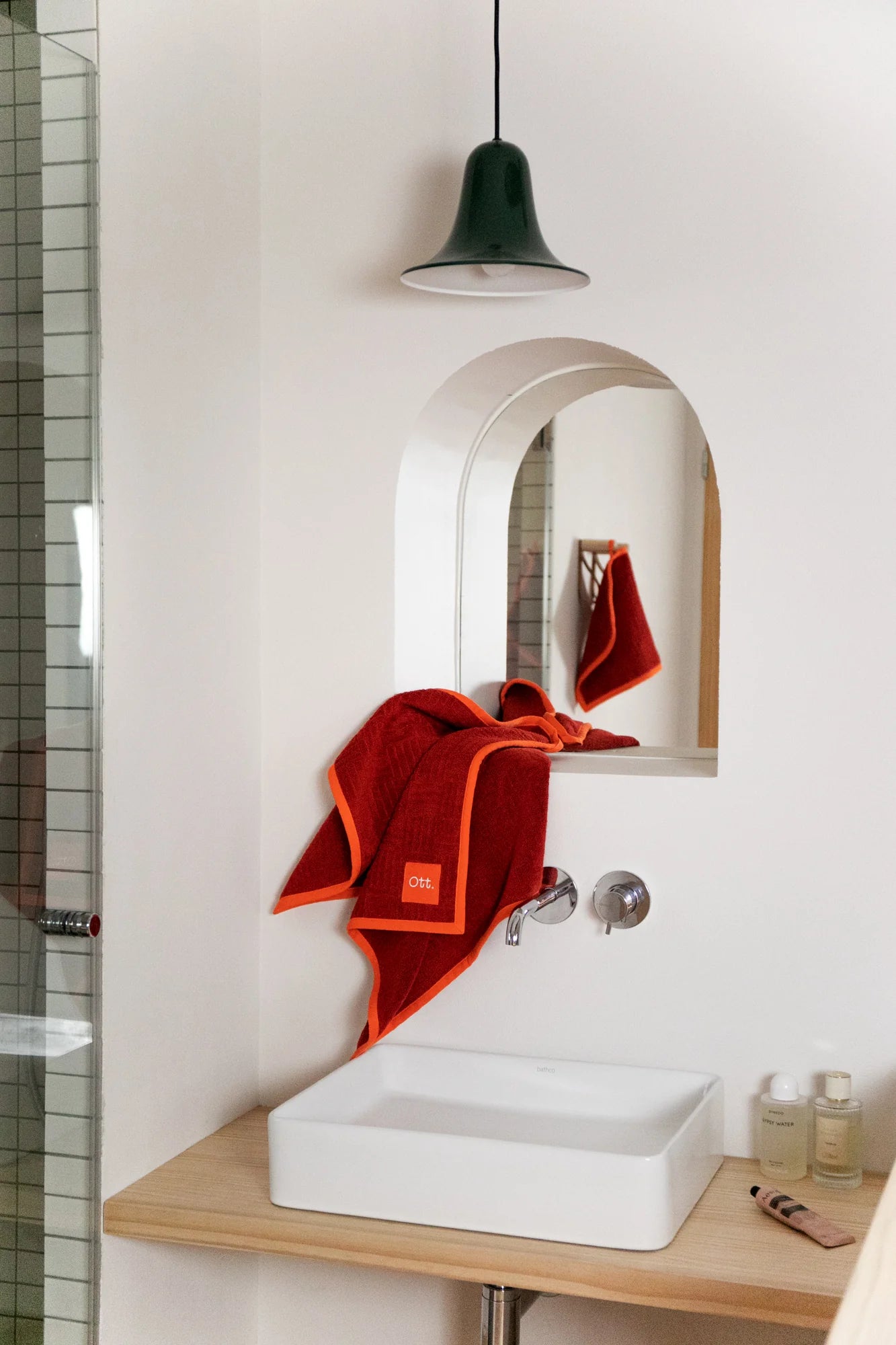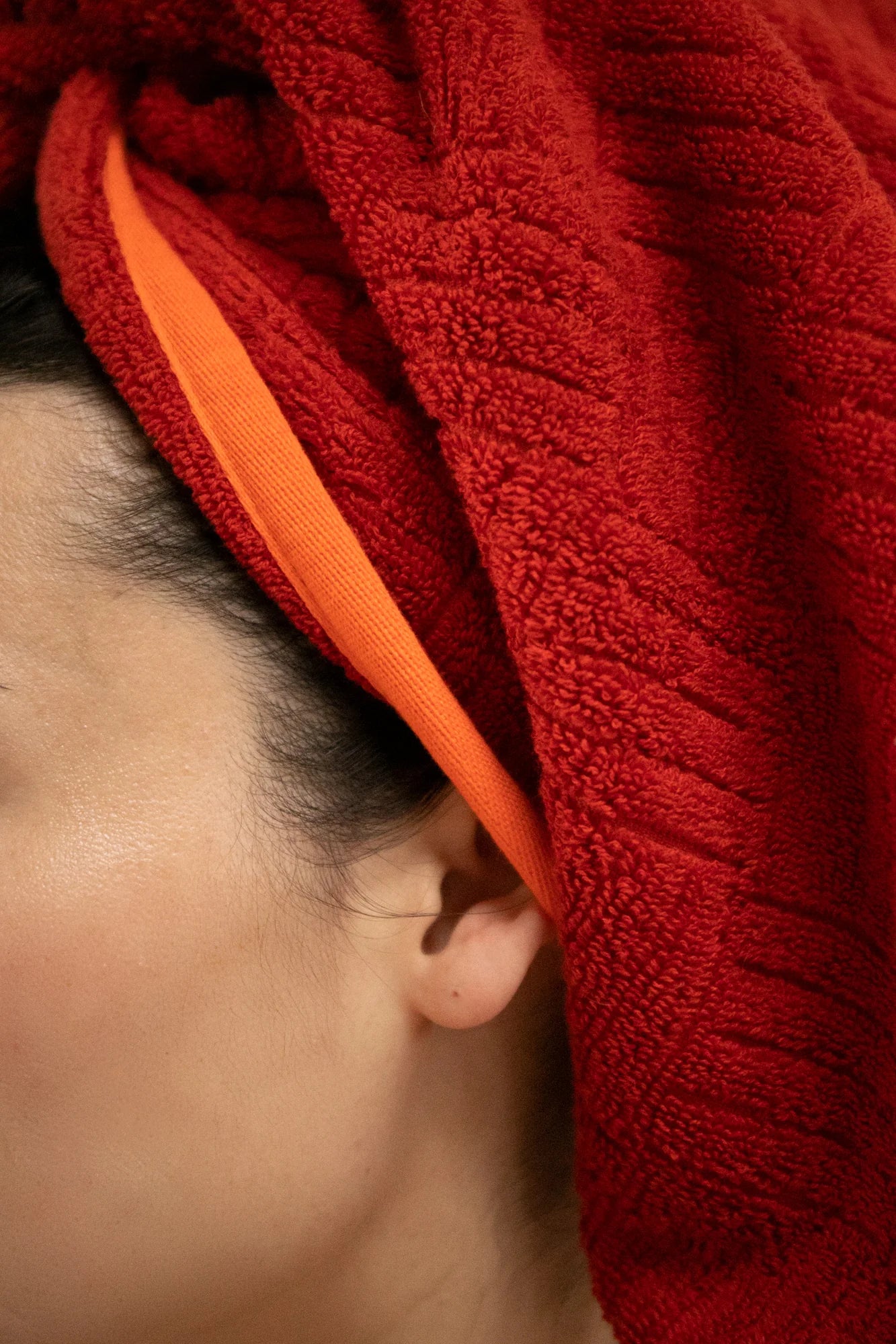 🎨 Design élégant et moderne : Un rouge vif rehaussé par un passepoil en Scarlet Ibis (orange) ajoute une touche audacieuse et sophistiquée à votre salle de bain ou vos sorties à la plage.